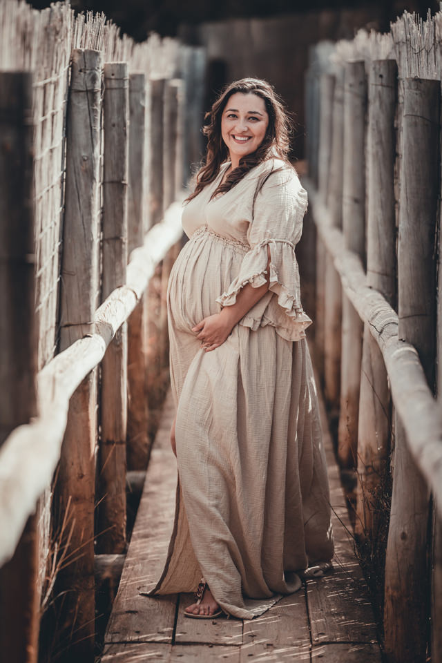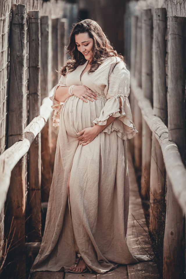 La elección del vestuario es crucial para complementar la belleza del atardecer. Es recomendable optar por prendas que fluyan y que se adapten bien a la figura de la embarazada. Los colores suaves y los tonos pastel, como el rosa, el lila o el blanco, son ideales para crear un contraste armonioso con el entorno. Vestidos largos y sueltos aportan movimiento a las imágenes, capturando la esencia del momento.
